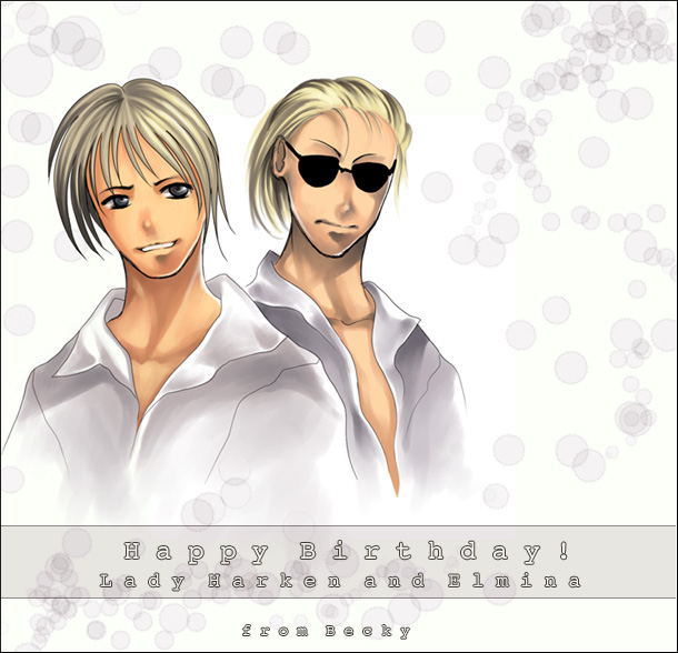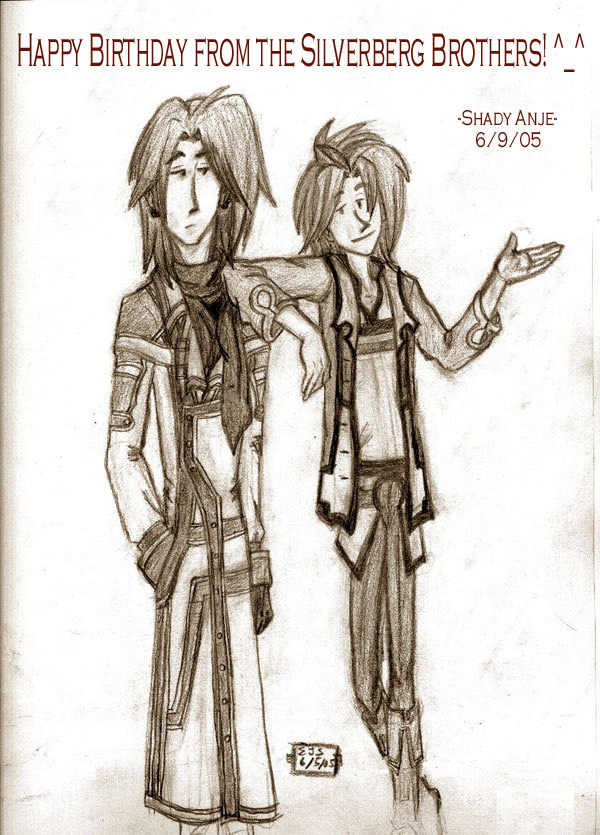 Albert & Caesar Silverberg (Suikoden 3) From: Shady Anje Another great b-day gift to us from Shady Anje. Albert sure looks like he didn't want to be in the same pic with his brother. Rating: E |