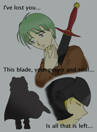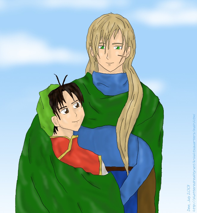Culgan & Seed (Suikoden 2) From: Tir McDohl Gift from a friend we knew through a Suikoden mailing list yeeeeaaars ago. Such a lovely picture. Rating: E |