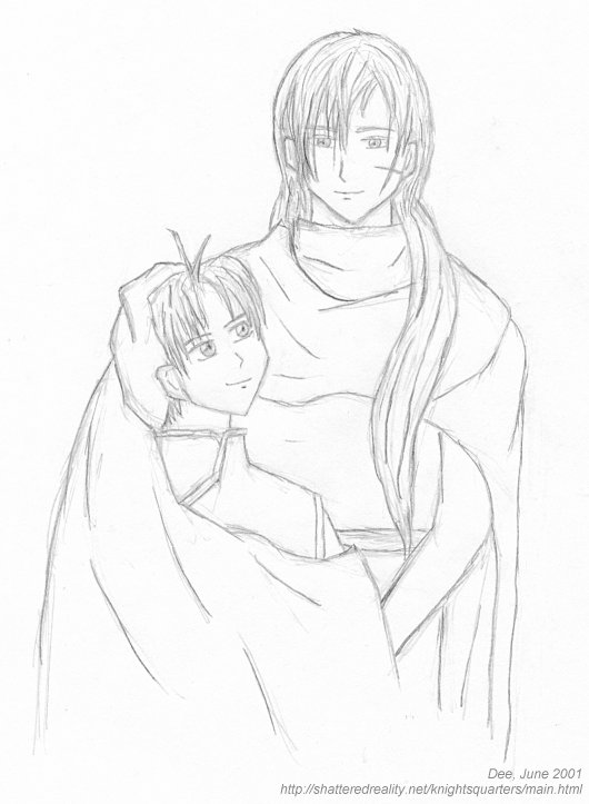 Pencil sketch To: Chou Gremio holding Young Master close to him. This was a bribery pic - I promised Chou that I'll draw this if she updates her website. Rating: T |