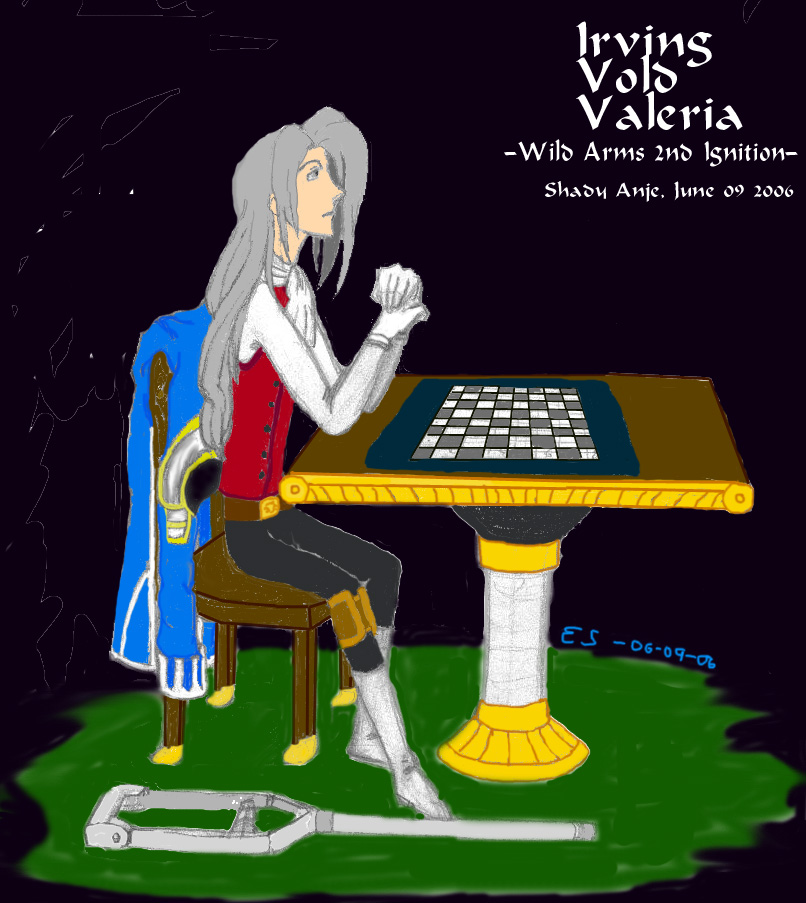 Irving Vold Valeria (Wild ARMS 2) From: Shady Anje A birthday gift from Shady Anje again. <3 Irving this time. He's very beautiful, but oh so cold. Rating: E |