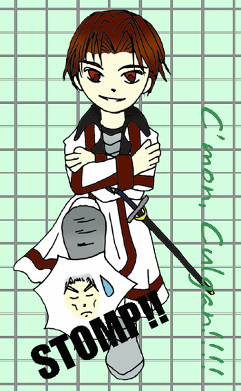 Seed & Klaus (Suikoden 2) To: littlemaiko A webring logo pic. Seed and Klaus. I had ketched Klaus once before doing this, and drawn Seed a couple of times, so it's pretty OK a pic I guess. Rating: T |