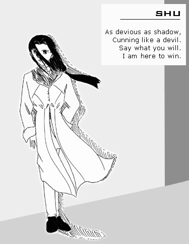 Shu (Suikoden 2) From: littlemaiko - Homepage In exchange for the Klaus pic - Shu, my favorite non-playable "good guy" from GS2. Nice wind effect. Rating: E |