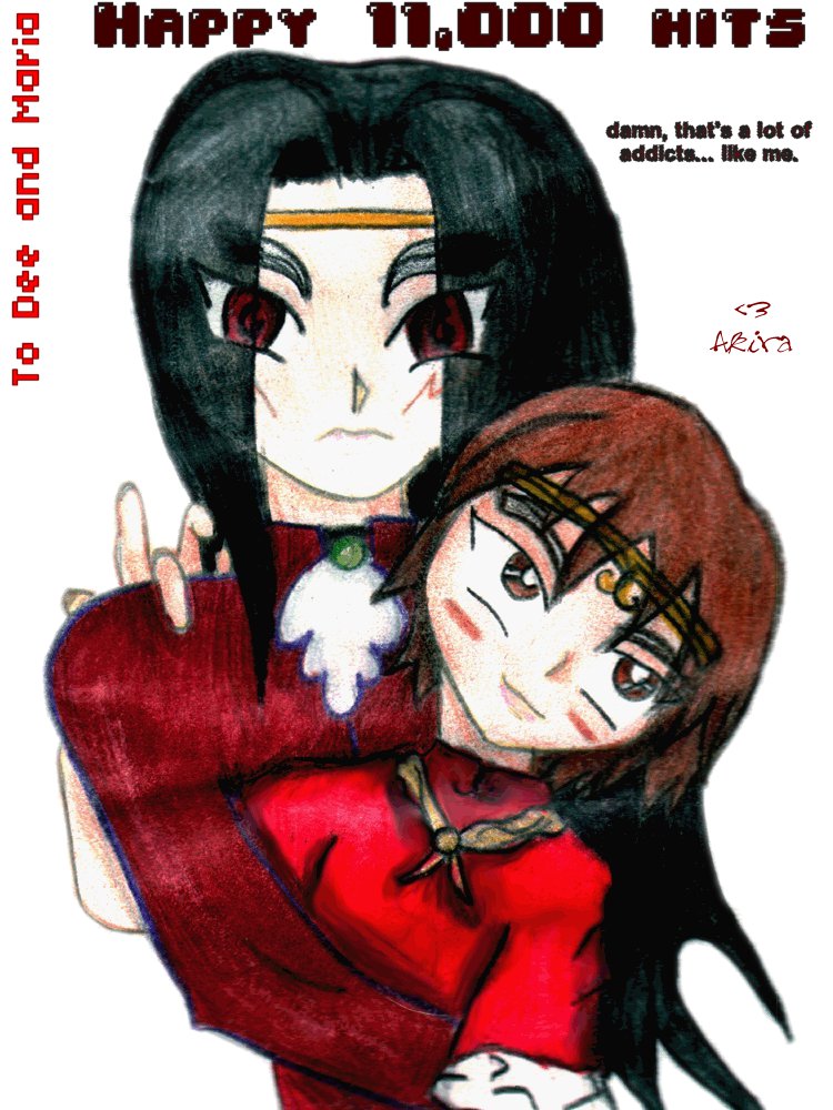 Shu and Hero (Suikoden 2) From: Akira 11 000 hits gift pic from our host! It has Shu holding the Suikoden 2 hero. Rating: E |