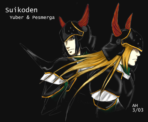 Yuber | Artist - Saeto The man in black. Or, better know as Yuber. Looking calm as usual, but who knows what he's up to. Bugged Seto to draw some Suikoden 3 art, and she likes Yuber. Rating: E |